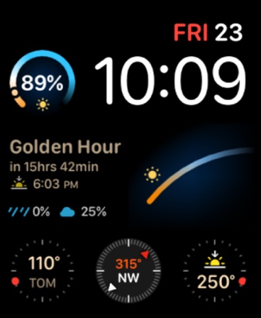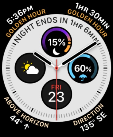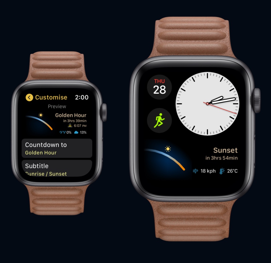 Countdown to your workouts around sunrise/sunset with this watch face for fitness enthusiasts